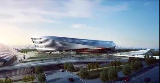 兩側(cè)旋轉(zhuǎn)成半圓的橙色與藍(lán)綠色的色帶分別代表著黃河與長江,寓意天南地北各民族的團(tuán)結(jié)凝聚。