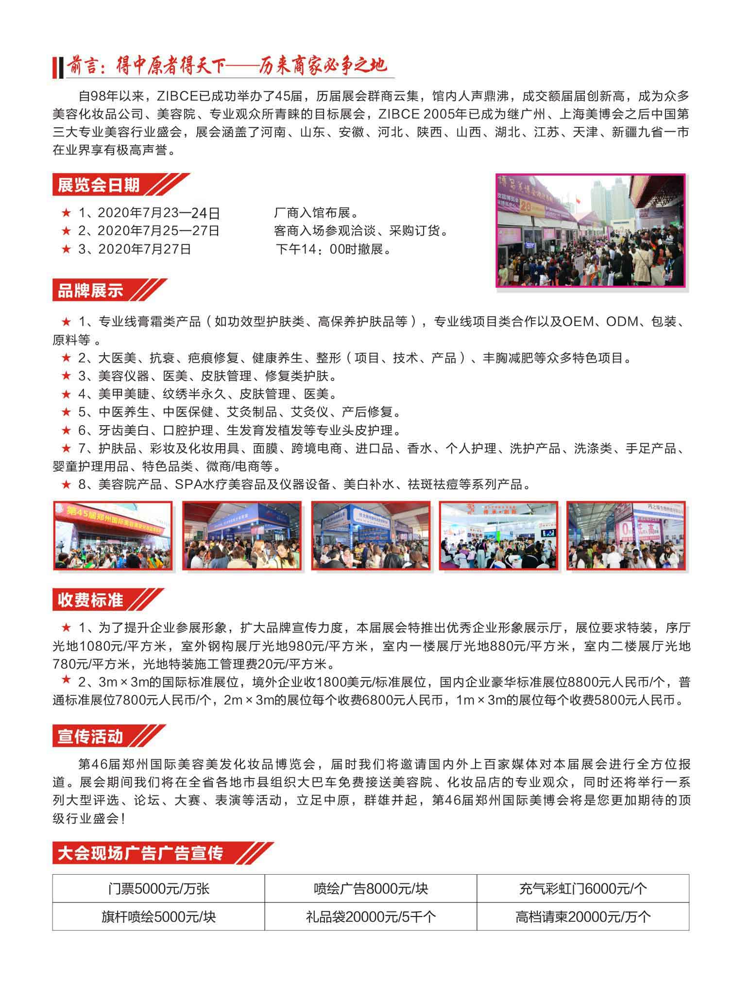 第46屆鄭州國(guó)際美容美發(fā)化妝品博覽會(huì),屆時(shí)我們將邀請(qǐng)國(guó)內(nèi)外上百家媒體對(duì)本屆展會(huì)進(jìn)行全方位報(bào)道。展會(huì)期間我們將在全省各地市縣組織大巴車免費(fèi)接送美容院、化妝品店的專業(yè)觀眾,同時(shí)還將舉行一系列大型評(píng)選、論壇、大賽、表演等活動(dòng),立足中原,群雄并起,第46屆鄭州國(guó)際美博會(huì)將是您更加期待的頂級(jí)行業(yè)盛會(huì)!