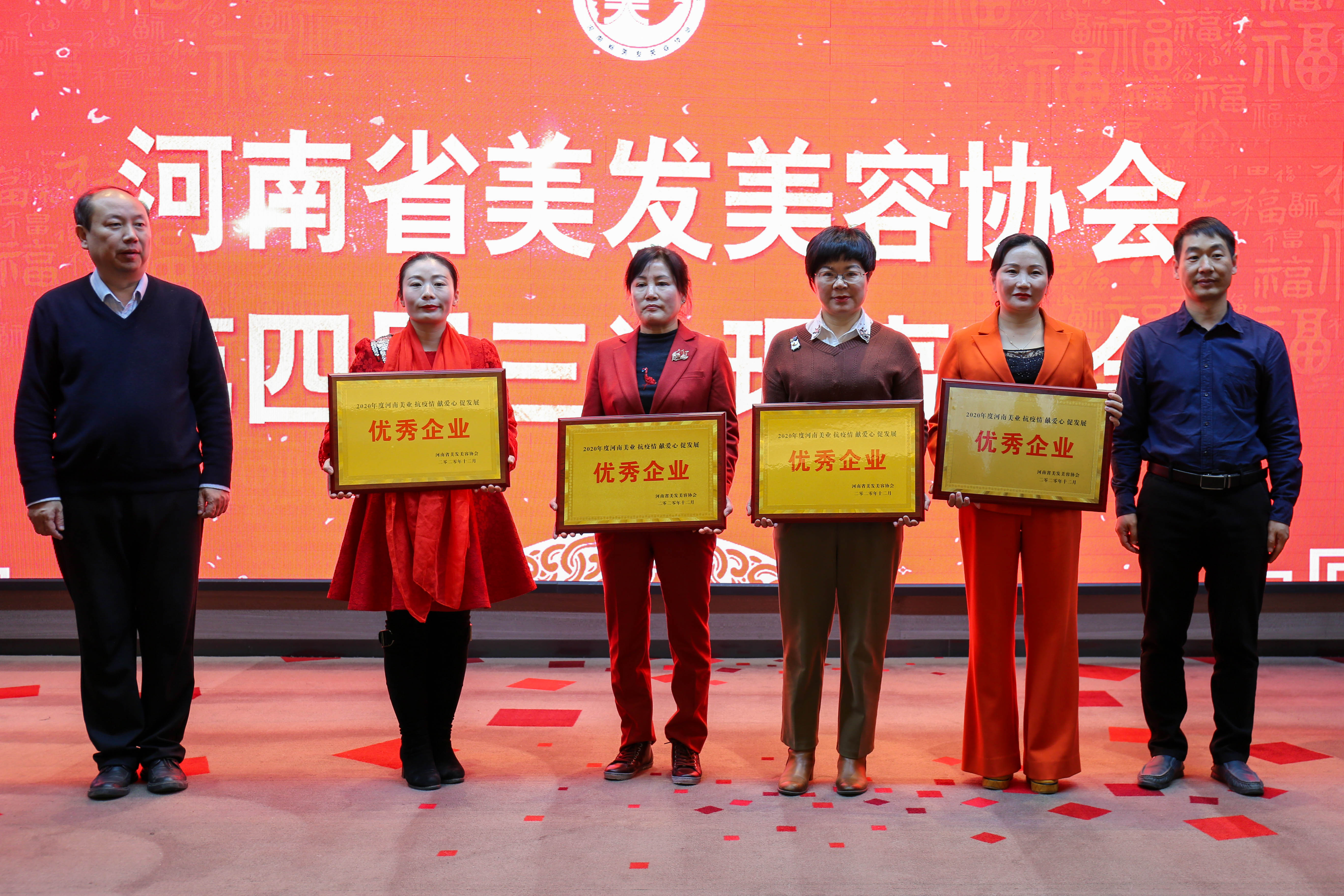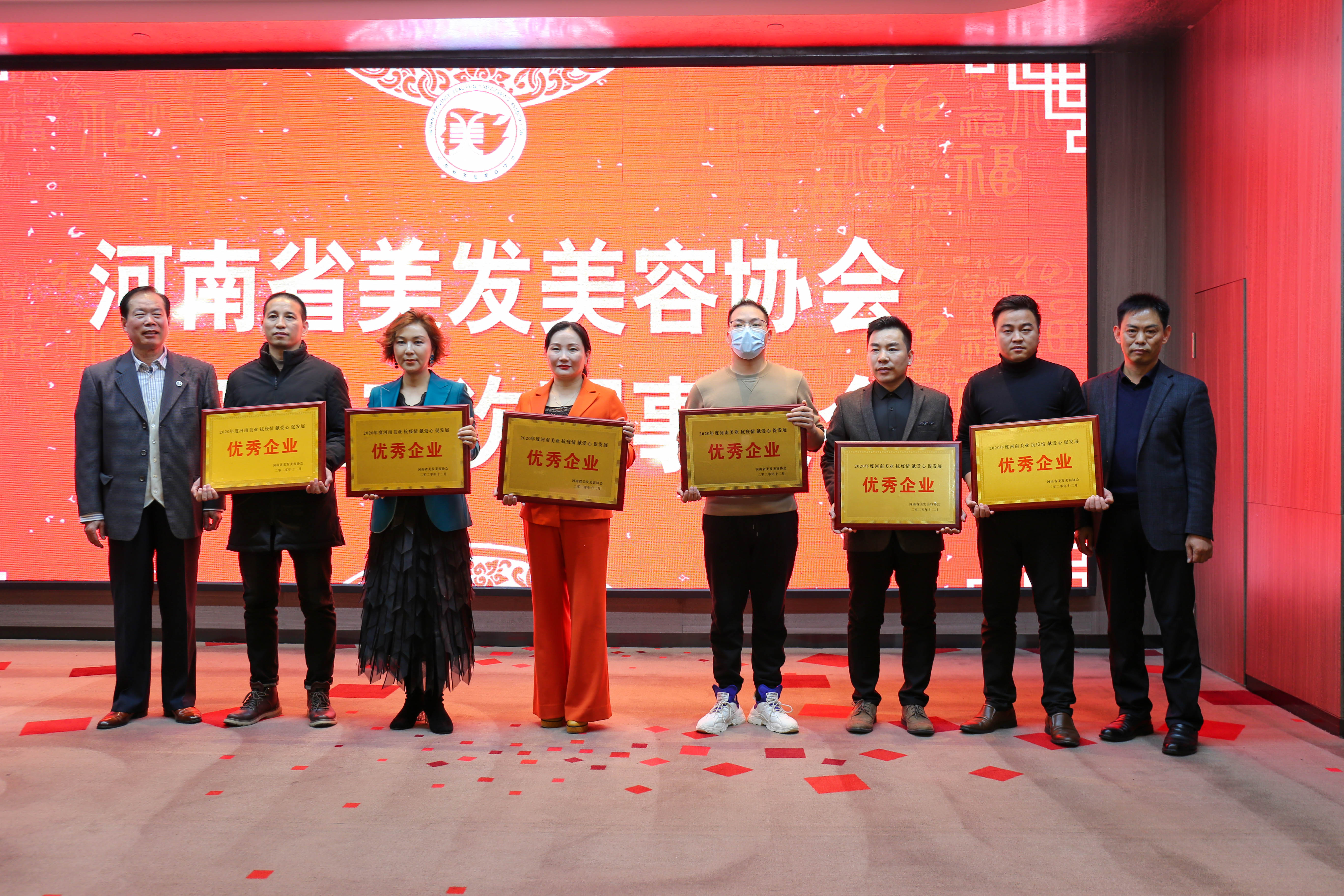 會(huì)議對(duì)2020年抗疫情、獻(xiàn)愛心,促發(fā)展中涌現(xiàn)出來(lái)的優(yōu)秀企業(yè)進(jìn)行了表彰,原省政府整規(guī)辦辦公室主任、四屆理事會(huì)名譽(yù)會(huì)長(zhǎng)胡紹榮同志,省商務(wù)廳呂詢處長(zhǎng),省藥監(jiān)局韓允明處長(zhǎng)、譚帥處長(zhǎng)為獲得2020年度河南美業(yè)優(yōu)秀企業(yè)稱號(hào)許昌整形美容醫(yī)院、廣東博昌展覽有限公司、暨科生物科技有限公司、廣州暄之妍化妝品有限公司、鄭州市伊思美爾教育咨詢有限公司、潤(rùn)楓上美實(shí)業(yè)有限公司、玉蘭貴人實(shí)業(yè)、河南容大化妝品有限公司、開封阿楠美膚養(yǎng)生連鎖會(huì)所、濮陽(yáng)市吳越職業(yè)培訓(xùn)學(xué)校等10家企企業(yè)頒發(fā)榮譽(yù)牌匾。