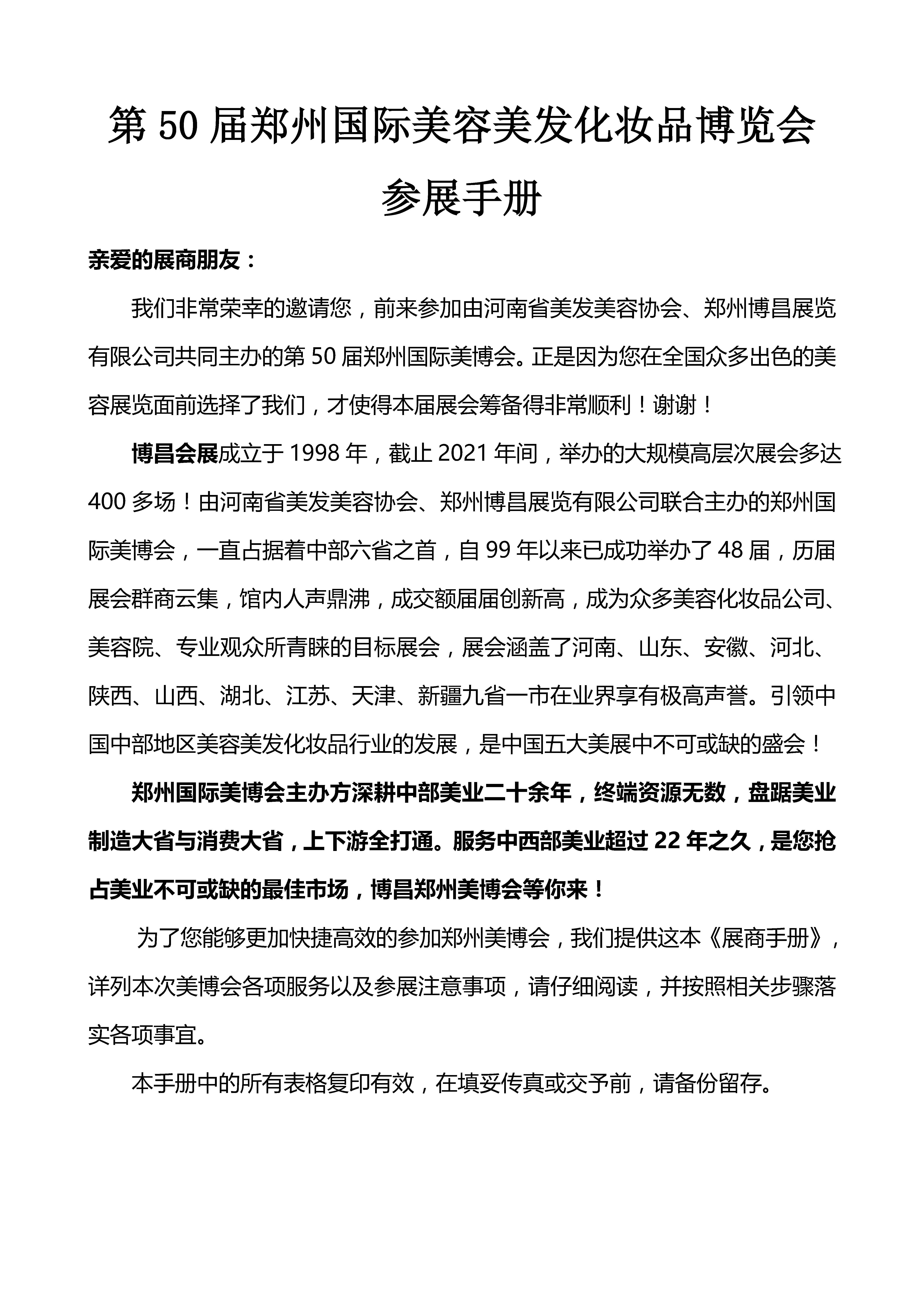 第50屆鄭州國(guó)際美容美發(fā)化妝品博覽會(huì)參展手冊(cè)
